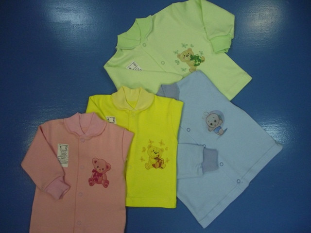 Кофточка ясельная из интерлока с апликацией на кнопках с воротником -стойкой из рибаны. р-ры 40,44,48,52,56