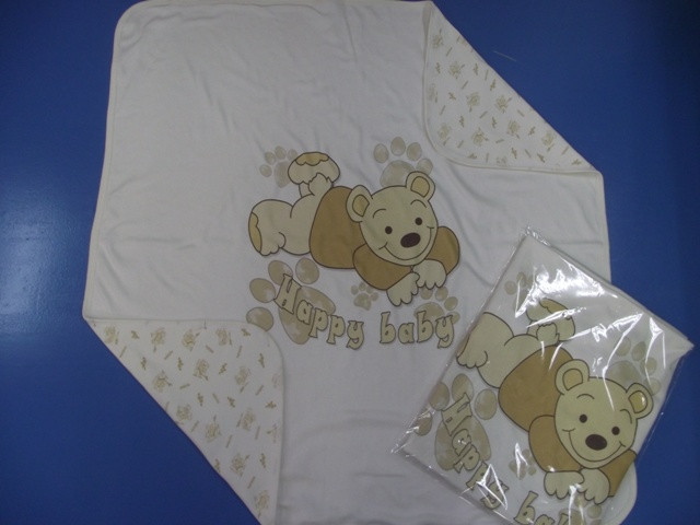 Плед из интерлока двухслойный : 1 сторона интерлок набивной 2 сторона интерлок однотонный с апликацией аналогичной набивному рисунку. цвет молочный 100% хб р-р 90х90 см