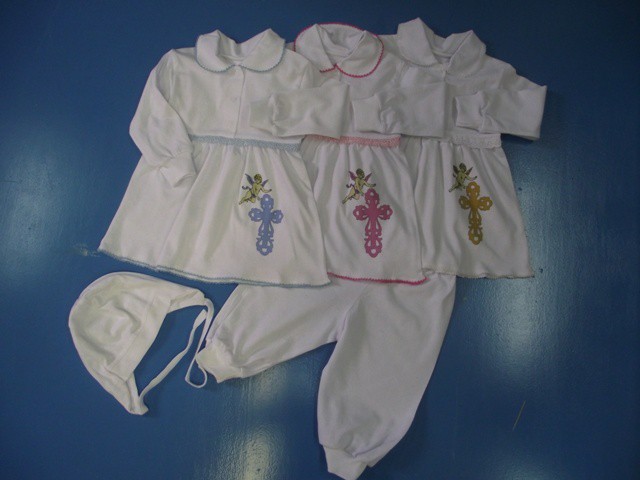 Крестильный набор из кулирки:шапочка,рубашка,брюки