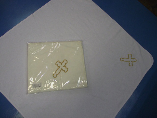 Полотенце крестильное из двухсторонней махры с вышитым крестиком.Цвет р-р:95 Х 95